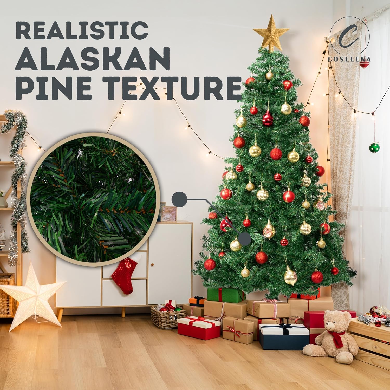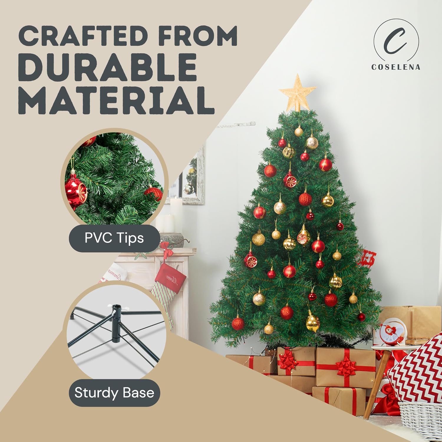 - πππππππππ πππ ππππππππ: Crafted from premium-quality PVC, the branches of our Christmas trees are designed to closely resemble real pine, featuring 800 lush tips that provide ample space for ornaments, garlands, and lights.