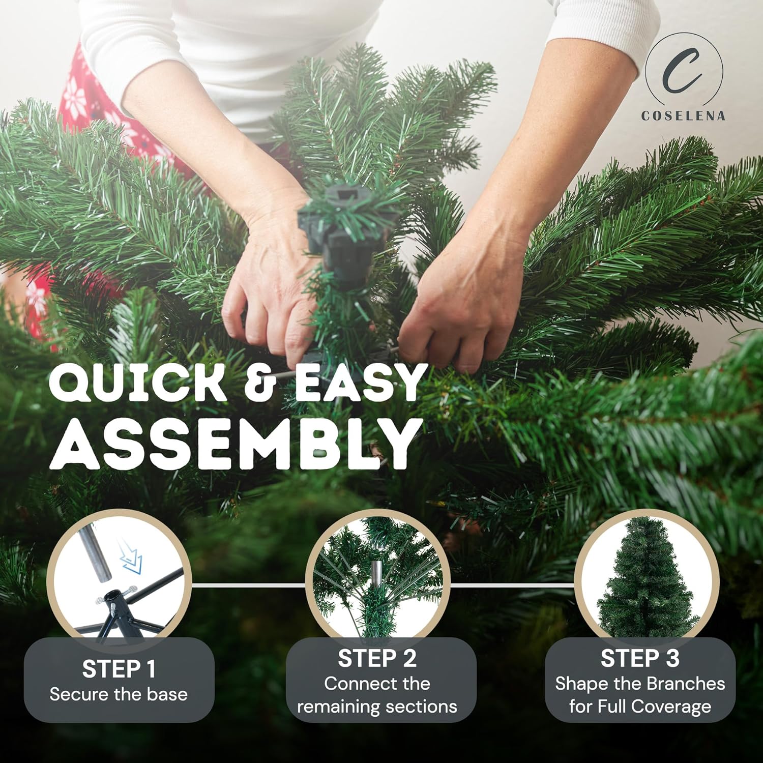 - ππππ ππππππππ & πππππππ: The hinged branches of our Xmas tree allow for quick and simple setup, while they fold down easily for compact storage after the holidays. This feature makes both assembly and takedown fast and easy, even when decorated with Christmas ornaments.