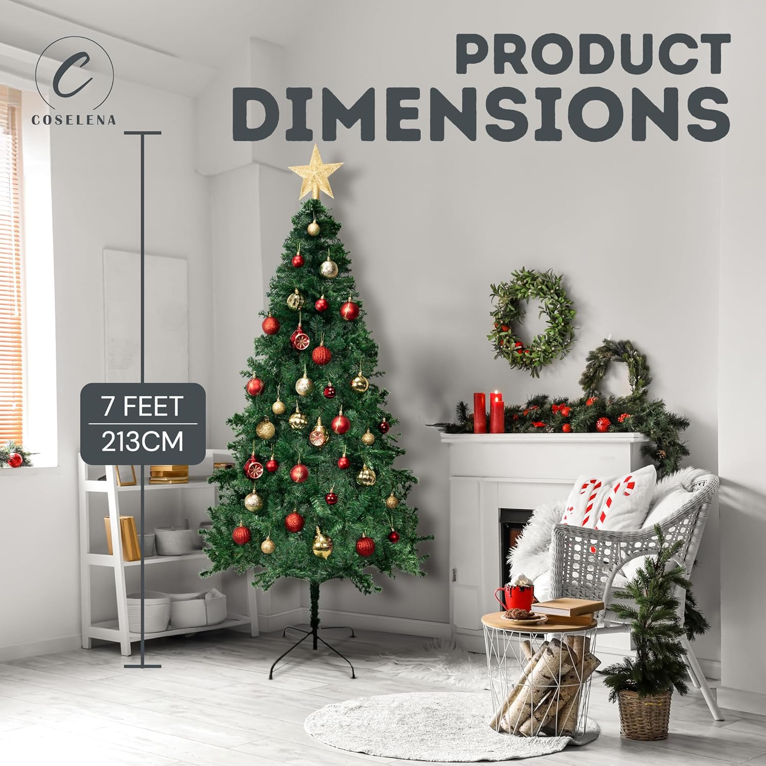 - ππππππππππππ πππππ: The classic green colour of our 7ft Christmas tree blends with any decor style, from traditional to contemporary. Personalise it with your favourite baubles, lights, and tinsel to create a festive display that reflects your unique holiday style.