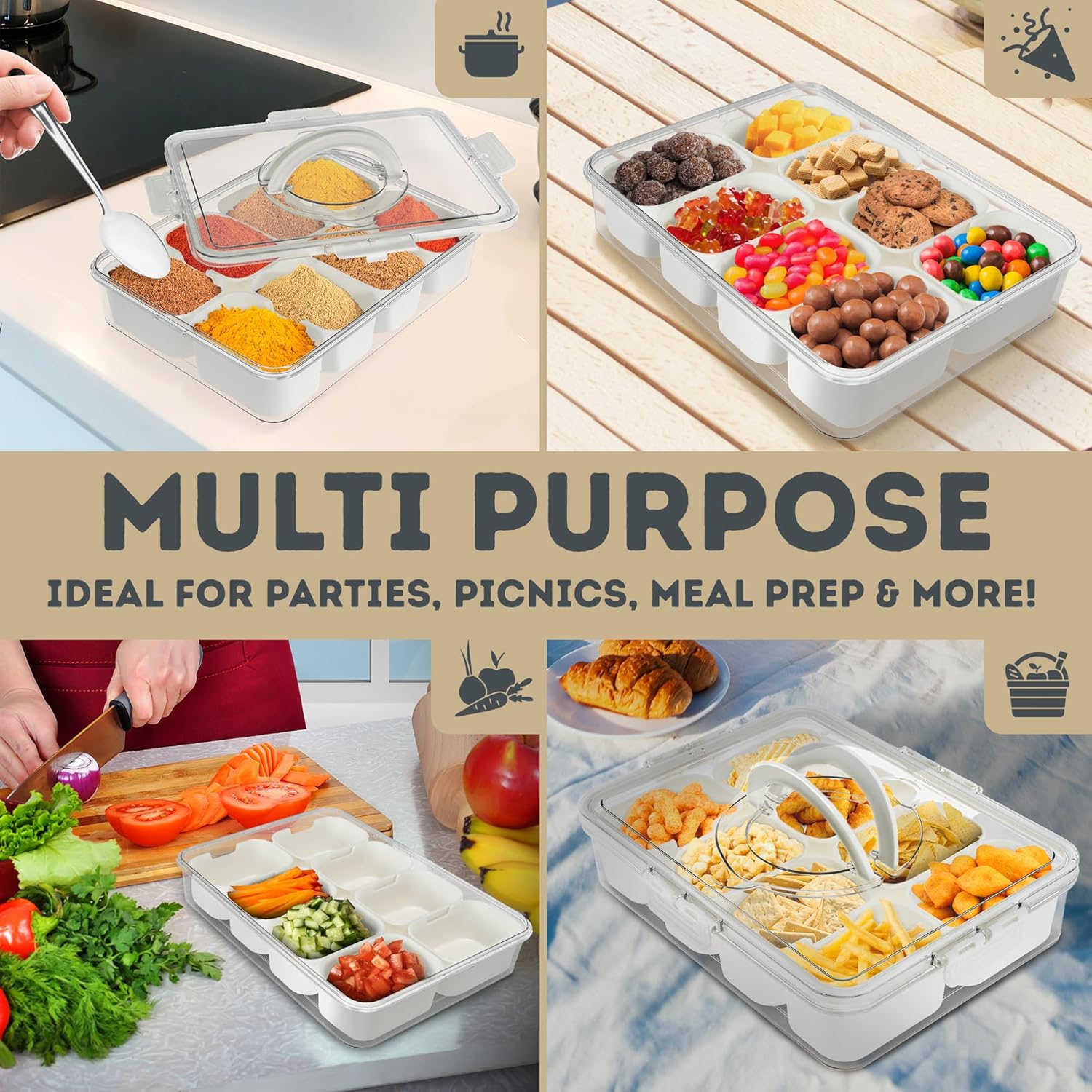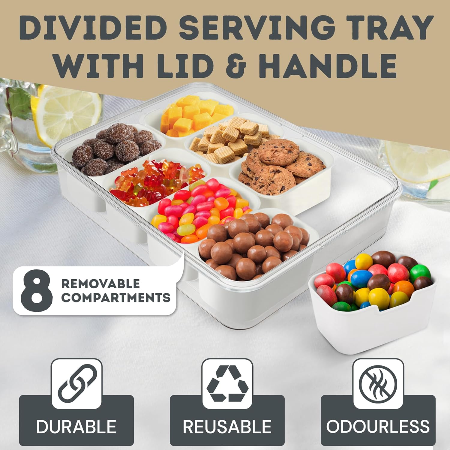 Divided Serving Tray with Lid & Handle - 8 Compartment