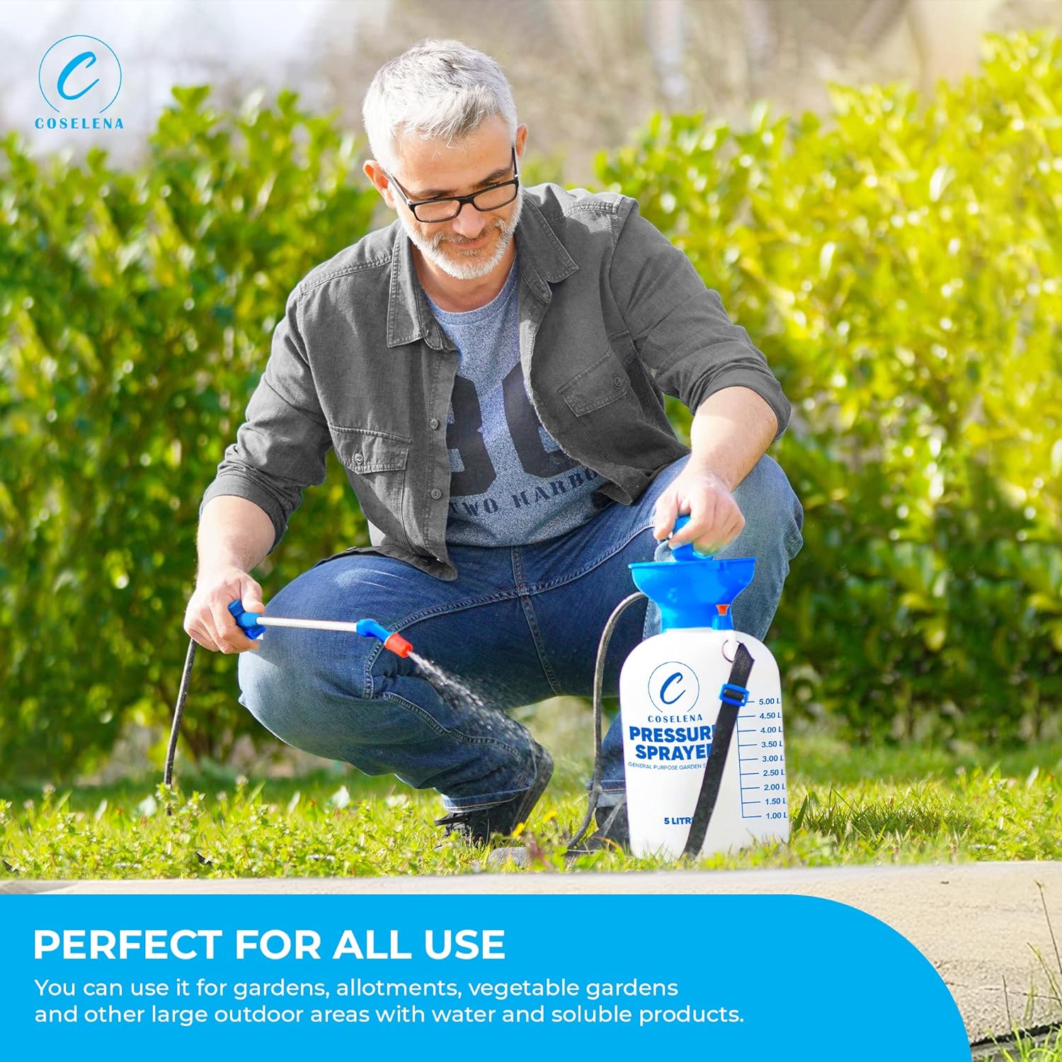 Our pressure spray bottle is suitable for various gardening tasks including watering, fertilizing, pest control, and more. It is also perfect for gardens, allotments, vegetable gardens, and large outdoor areas. This high pressure sprayer is a versatile tool to help maintain and enhance your garden's health and beauty.